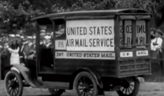 The northbound flight was scheduled for 11:30 a.m. Mail was accepted for the flight up to 10:30 or 11:00 a.m. and postmarked with a special “First Trip” marking. A mail truck marked “United States Air Mail Service” carried the mailbags to the airfield.