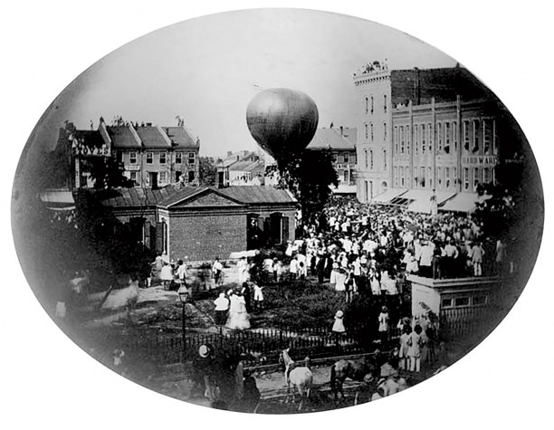 Buffalo Flight– The Buffalo was built for Samuel Archer King in 1873 and had a capacity of 91,000 cubic feet and seating for nearly twenty passengers. It made one of its celebrated ascents from the grounds of the Centennial Exhibition in Philadelphia on 4 August 1876.