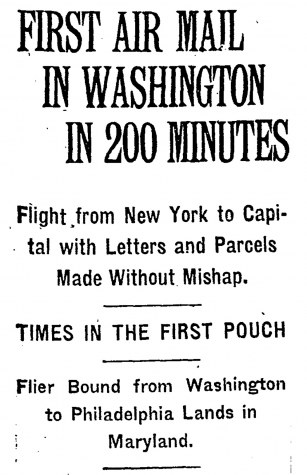 Newspapers reported the mishap the next day. Under the headline “FIRST AIR MAIL IN WASHINGTON IN 200 MINUTES”, the New York Times ran a smaller headline, “Flier Bound from Washington Lands in Maryland.”