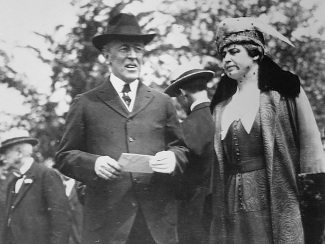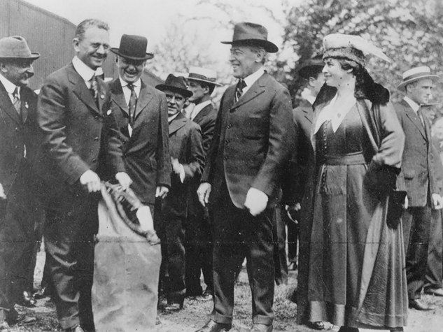 In attendance were President Wilson and his wife, Edith, who arrived by car shortly after 10:00 a.m. to greet honored guests, postal officials and the pilot, Lieut. Boyle. The President's left hand was bandaged; he had recently burned it on a tank's hot gun barrel while posing for photographs during a military display at Fort Rucker, Va.