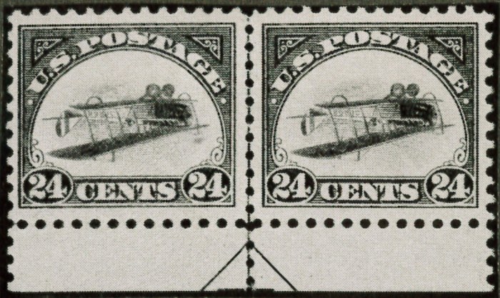 The pair was offered in a 1955 H.R. Harmer auction of the Lieutenant Colonel Donald L. Harvey Collection, where it was purchased by dealer Jack Molesworth. Molesworth broke the pair soon after the auction, and removed the bottom sheet selvage.