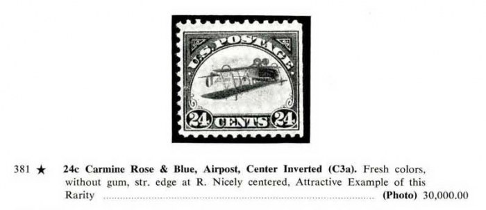 24c Carmine Rose & Blue, Airpost, Center Inverted (C3a). Fresh colors, without gum, str. edge at R. Nicely centered, Attractive Example of this Rarity