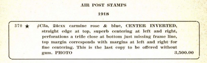 perforations a trifle close at bottom just missing frame line, top margin corresponds with margins at left and right for fine centering . This is the last copy to be offered without gum. PHOTO 3,500.00