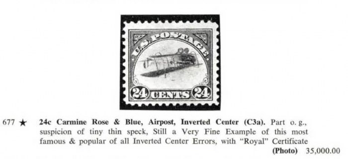 24c Carmine Rose & Blue, Airpost Inverted Center (C3a). Part o. g., suspicion of tiny thin speck, Still a Very Fine Example of this most famous & popular of all Inverted Center Errors, with "Royal" Certificate