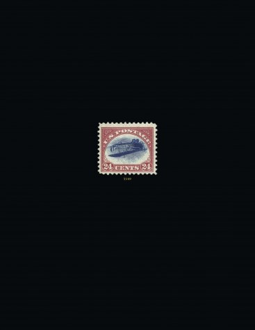 VERY FINE APPEARING EXAMPLE OF THE FAMOUS 1918 24-CENT INVERTED "JENNY". THIS IS ONE OF THE MOST EASILY RECOGNIZABLE STAMPS IN ALL OF PHILATELY.
