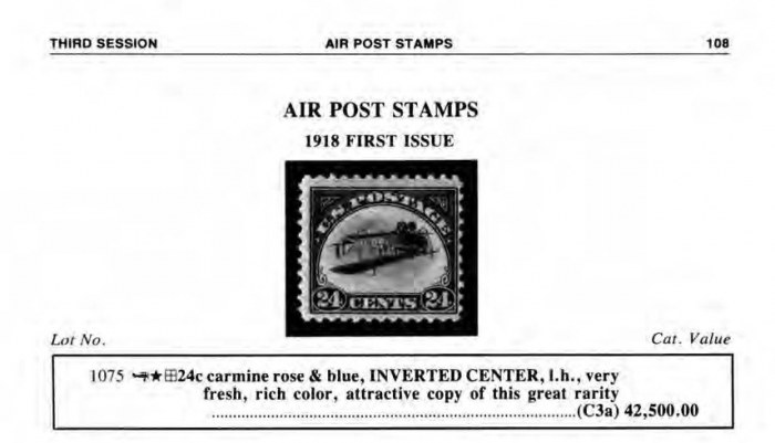 24c carmine rose & blue, CENTER INVERTED, l.h., fresh, rich color, attractive copy of this great rarity