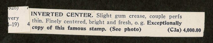 24c carmine & blue INVERTED CENTER, slight gum crease, couple of perfs tiny thin, finely centered, bright and fresh, o.g., exceptionally choice copy of this famous stamp