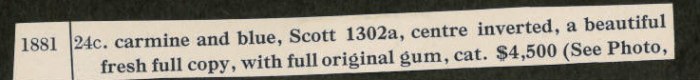 24c carmine and blue, Scott 1302a, centre inverted, a beautiful fresh full copy, with original gum, cat. $4,500
