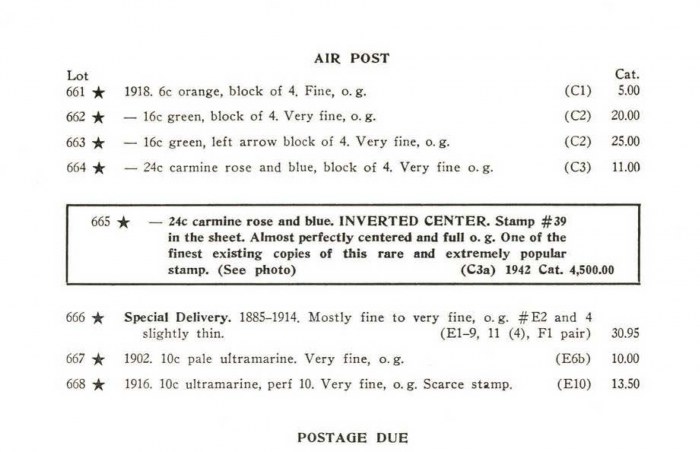 21c carmine rose and blue. INVERTED CENTER. Stamp #39 in the sheet Almost perfectly centered and full o.g. One of the