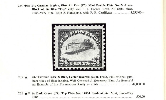 24c Carmine Rose & Blue, Center Inverted (C3a). Fresh, Full original gum,