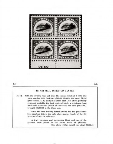 block sold at auction (which of course did not have plate No.) brought $22,000.00 in the Close sale.