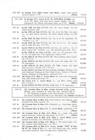 24c Carmine Rose & Blue, Center Inverted (C3a). Large Margins, gum disturbed & small thin spot, centered trifle to L., VF Appearing Example of this Most Famous of All Philatelic Errors, Realized $82,500 in our 1982 Rarity Sale