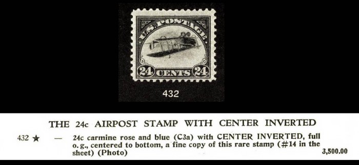 THE 24c AIRPOST STAMP WITH CENTER INVERTED